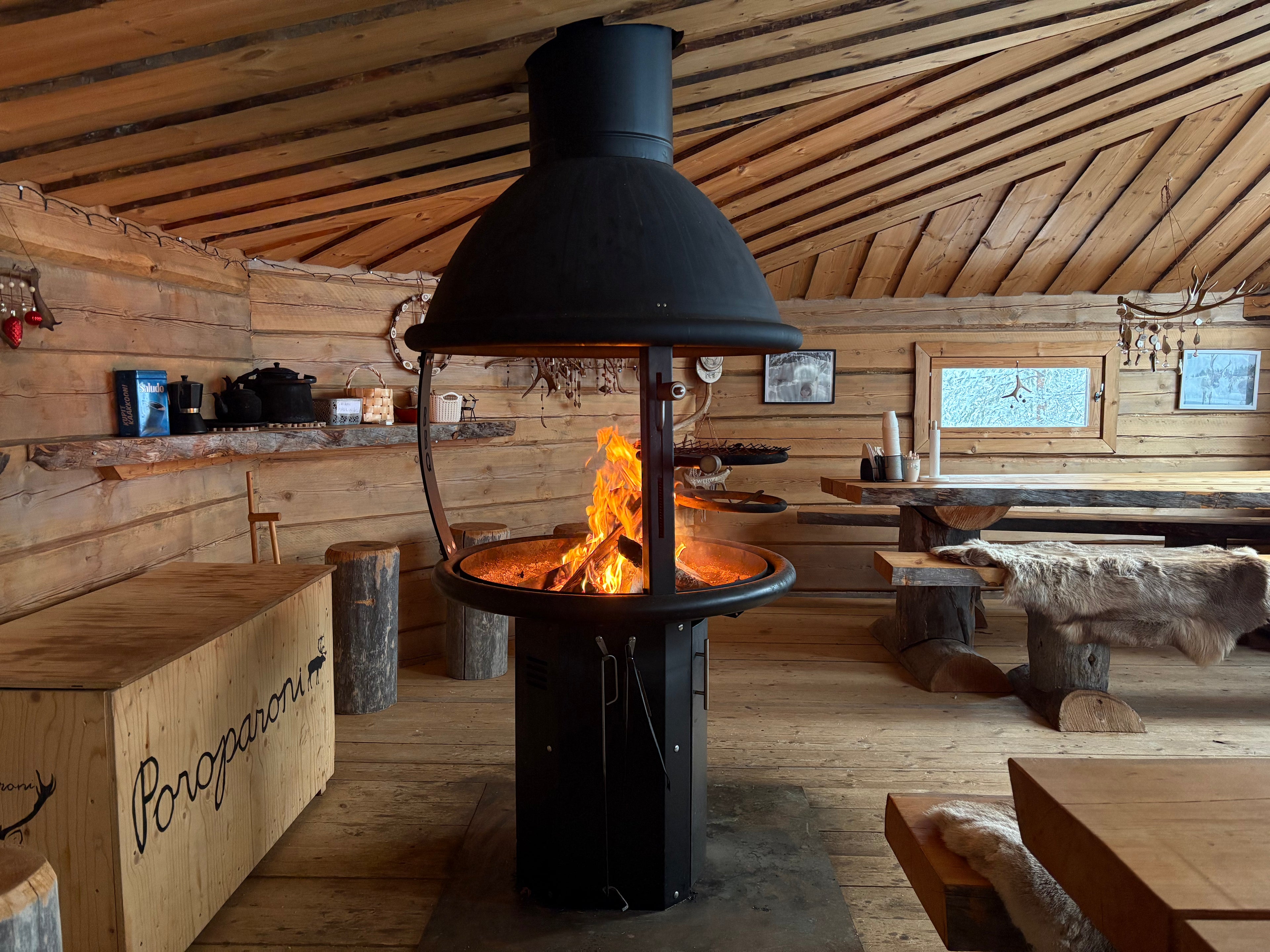 Mikäpä sen mukavampaa, kuin poroajelun jälkeen istahtaa grillikodan äärelle lämmittelemään. Lämmin tunnelma ja maukas ruoka kruunaavat elämyksen.